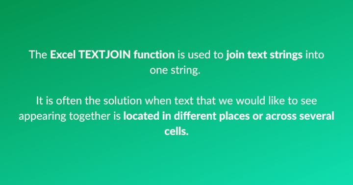 Are you looking to improve your proficiency in Excel formulas and functions? Here is a new one for you: The Excel TEXTJOIN function is used to join text strings into one string. It is often the solution when text that we would like to see appearing together is located in different places or across several cells.