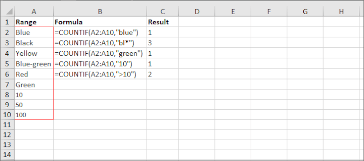 | Syntax | COUNTIF(range, criteria) |