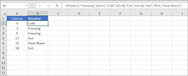 | Syntax | IFS(logical_test1, value_if_true1, [logical_test2, value_if_true2],...) |