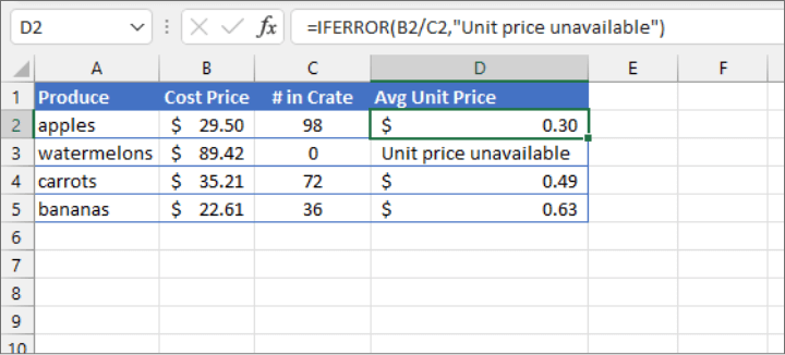 =IFERROR(value, value_if_error)