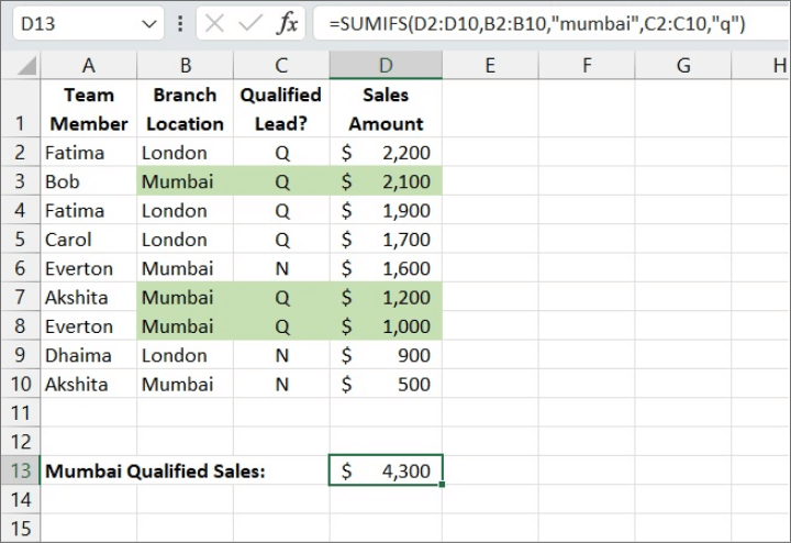 10. SUMIFS