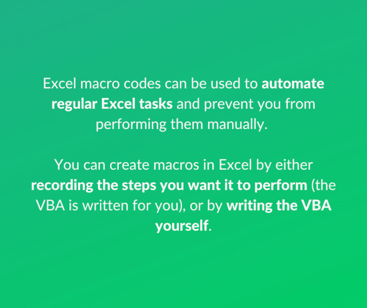Excel macro codes can be used to automate regular Excel tasks and prevent you from performing them manually. This results in time saved and more reliable work.