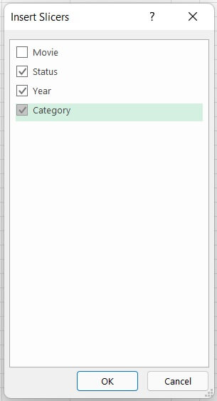 - Go to Insert > Slicer.