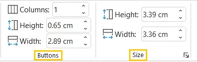 - Use the Height and Width fields within the “Buttons” command group to make the buttons wider or narrower.