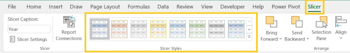 You can change a slicer’s color theme by selecting a style from the Slicer Styles gallery.