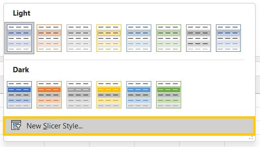 - Click the down arrow and then select the New Slicer Style… command.