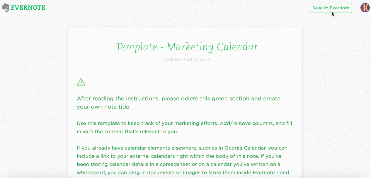 When you find one that you’d like to add to your own Evernote account, simply click “Save to Evernote” in the upper righthand corner and then select which notebook you’d like to save it to.