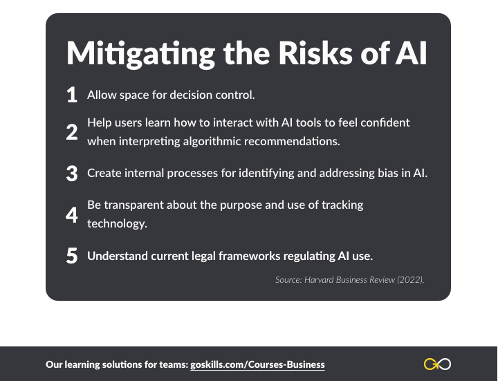 - AI systems may still be susceptible to biases if the algorithms they use have not been thoroughly checked for potential biases. For example, if an AI system is looking for patterns in resumes received over the past ten years, and in that time, only resumes from a certain demographic have been received, the AI system may be prone to excluding candidates who do not fit that demographic. The AI system is only as reliable as the data sets they are basing their analyses on.